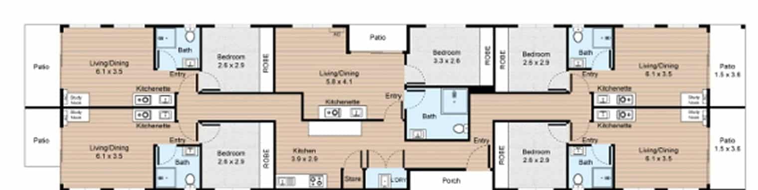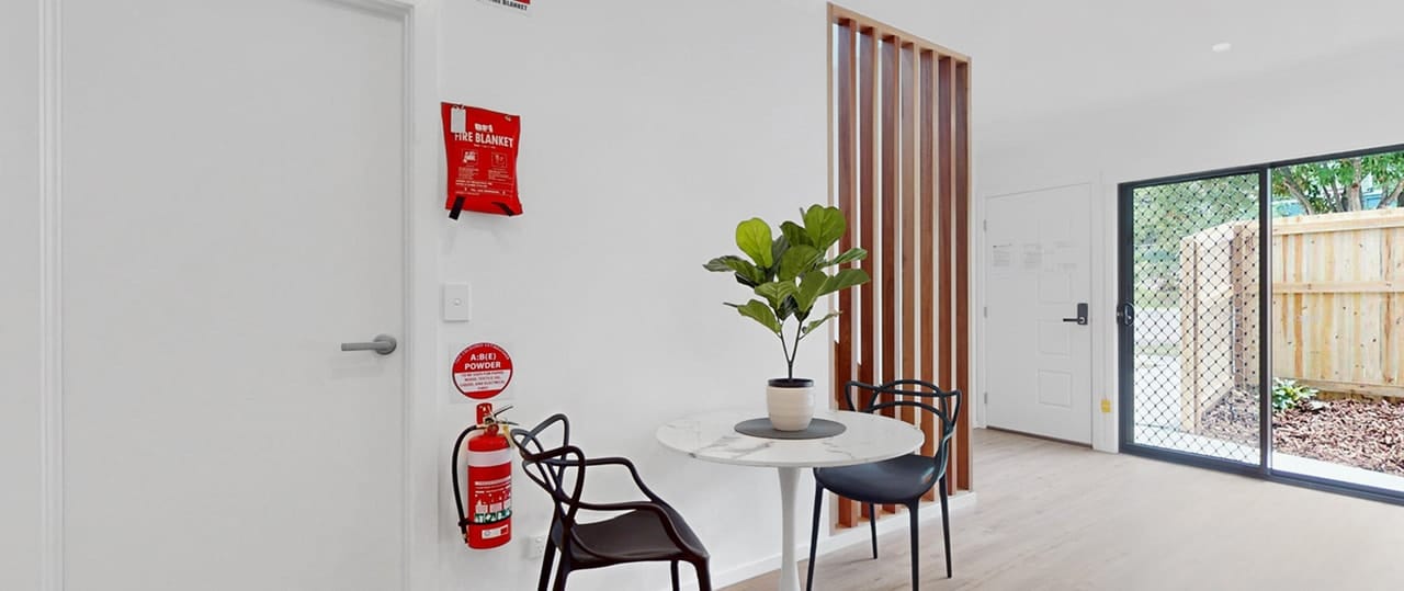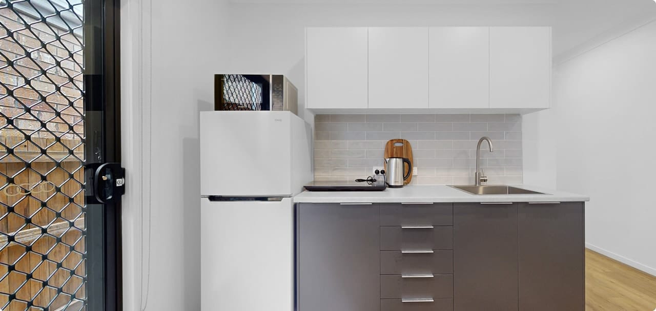 Each room is fitted with an individual split system A/C and comes complete with bedroom, ensuite and living space with kitchenette. The common area includes a full kitchen with oven, cooktop and rangehood and laundry facilities with 2 x washing machines.